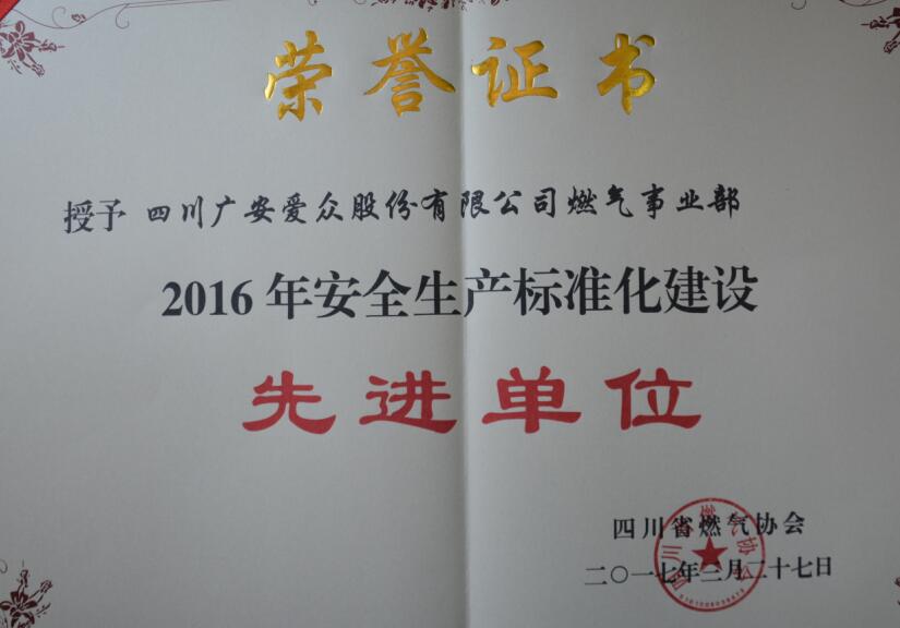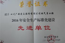 燃氣事業部被省燃協授予“2016年安全生產標準化建設先進單位”等稱號