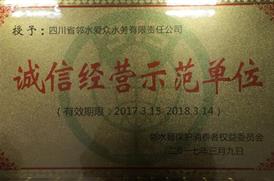 2017年3月14日,鄰水愛眾水務公司被鄰水縣保護消費者權益委員會評為“誠信經營示范單位”。