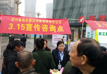 “3.15”國際消費者權益日到來之際,鄰水愛眾水務公司在龍騰廣場組織開展了以“網絡誠信 消費無憂”為主題的宣傳咨詢活動。